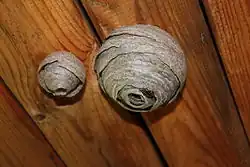 Порой встречаются личинки жуков-кожеедов и настоящих мух, которые питаются остатками пищи, шкурками и трупами личинок и имаго ос.