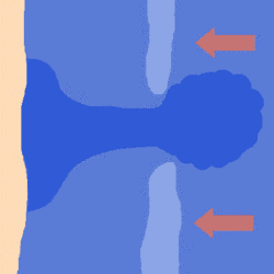 - Разрыв в общем строении приливных волн: сплошная полоса волн, а посередине пяти-десятиметровый разрыв. Реже встречается разрыв в волнах до 50 метров, — но тоже бывает[1].