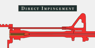 При прямом воздействии пороховые газы проходят через газовую трубку и напрямую толкают затворную раму назад, осуществляя тем самым экстракцию стреляной гильзы. При таком принципе на затворной раме и ствольной коробке постепенно образуется нагар, что при редком уходе может вызвать задержки в работе оружия или даже заклинивание. Самым известным оружием, использующим принцип прямого воздействия, являются винтовки системы Юджина Стоунера AR-15/M16.