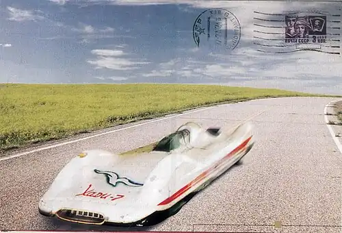Пример наклеивания стандартной марки на лицевую сторону немаркированной открытки, прошедшей почту (СССР, конец 1960-х годов). Место для вертикальной марки стандартного выпуска отпечатано на художественной стороне открытки