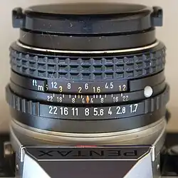 На современных фотообъективах с электронным управлением такая шкала (как и кольцо регулировки диафрагмы) может отсутствовать, в таком случае установка диафрагмы производится органами управления фотоаппарата и передается через байонет объектива. В современных объективах байонет является не только механическим, но и электронным интерфейсом, осуществляя соединения микропроцессоров объектива и камеры с помощью электрических контактов.