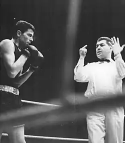 - Рефери поворачивается к спортсмену, находящемуся на настиле ринга, и начинает отсчёт от 1 до 10;