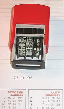 Штамп — ручной инструмент, изготовленный из различных видов материалов, для создания оттиска или переноса красителя на различные материалы: глина, металл, воск, сургуч, кожа, бумага, а также тесто.