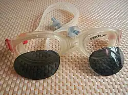 Очки — один из аксессуаров для спортивного плавания. Первые прототипы очков для плавания появились достаточно давно. Для нормального зрения человеческого глаза под водой необходима воздушная прослойка. Известно, что в XIV веке персидские ныряльщики использовали очки, изготовленные из отполированных черепашьих панцирей, для подводного плавания. В начале 1930-х гг. Гай Гилпатрик, американский писатель, живший во Франции, приспосабливает для ныряния авиаторские очки, сделав их водонепроницаемыми с помощью оконной замазки[1]. Распространились по миру очки для плавания где-то в 1950-х гг. и поначалу были небезопасными, так как делались из стекла. Они легко бились, создавая опасные осколки[2].