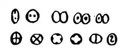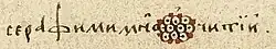 - и даже «облако» из нескольких О с точкой внутри каждой (ꙮ) — в слове многоꙮчи́тїи (о серафимах);