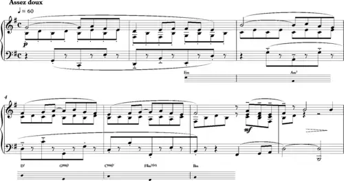 - преимущественно аккордовое изложение, в которое иногда добавляются пассажи;