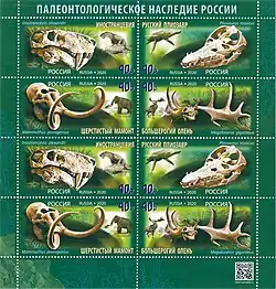 Почтовые марки России, 2020. Палеонтологическое наследие России: иностранцевия, русский плиозавр, шерстистый мамонт, большерогий олень