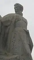 С правой стороны памятника изображён ингушский революционер Гапур Ахриев. Он изображён в черкеске, без головного убора. Сосредоточенный взгляд, спокойное лицо выражают образ волевого и целеустремлённого руководителя ингушской бедноты, взгляд направлен вперёд.