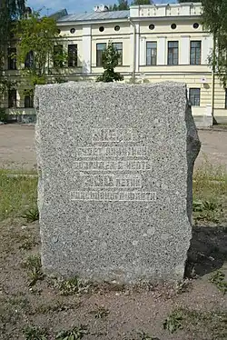 ![]() Памятник генерал-адмиралу Федору Апраксину в Выборге. На заднем фоне Выборгский замок (башня Святого Олафа) | |