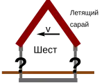 Рассмотрим случай, когда задняя дверь сарая всегда остаётся закрытой. Пусть она настолько твёрдая, что при столкновении с ней шест тут же останавливается, не пробивая её. Затем, по описанному выше сценарию, в СО сарая настанет момент, когда шест полностью поместится в сарае, прежде чем он столкнётся с задней дверью. Однако, в СО шеста, он слишком велик, чтобы поместиться в сарай, поэтому ко времени столкновения со стенкой задняя часть шеста до сих пор не достигла передней двери сарая. Выглядит как парадокс. Вопрос в следующем: пересечёт ли задний конец шеста переднюю дверь сарая или нет?