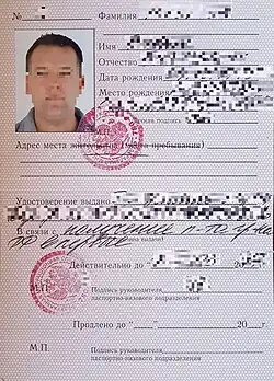 - Внутренний паспорт (удостоверение личности)
