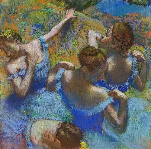 Некоторые ведущие художники-импрессионисты охотно пользовались пастелью, ценя её за свежесть тона и быстроту, с какой она позволяла им работать. Манера Дега, например, отличалась удивительной свободой, он накладывал пастель смелыми, ломаными штрихами, иногда оставляя проступающий сквозь пастель тон бумаги или добавляя мазки маслом или акварелью. Одним из открытий художника стала обработка картины паром, после чего пастель размягчалась и её можно было растушёвывать кистью или пальцами. Дега не только по-новому использовал технику пастели, но и создавал с её помощью картины, превосходящие по размеру произведения других художников, выполненные пастелью. Иногда он сшивал для этого вместе несколько листов, чтобы получить поверхность нужного ему размера.