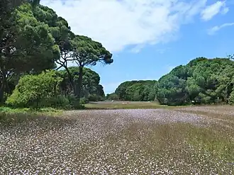 Лесистость Пелопоннеса составляет от 0 до 10 процентов к общей площади полуострова[295]. Истребление лесов в Средиземноморье началось со времён античности, гораздо раньше чем в остальной Европе. Естественное возобновление и искусственное лесонасаждение в средиземноморье очень трудоёмки из-за использования лесов для выпаса скота, большой сухости тропического воздуха и усиленной эрозией почв, которая возрастает по мере уничтожения лесов. Частые лесные пожары на огромных территориях Средиземноморья лишь ухудшают ситуацию[295].