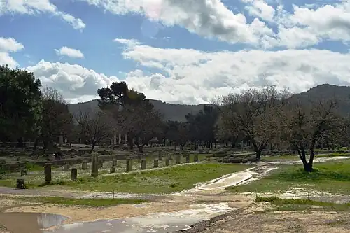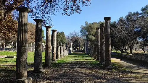 - Олимпия[92][93] - самая маленькая часть Элиды. Территория Олимпии ограничивалась окрестностями города Олимпии и Писы. Коренными жителями Олимпии являлись элейцы (жители региона Элиды). Во времена нашествия дорийцы вместе с этолийцами захватили большую часть Писатиды и подчинили Олимпию. Именно дорийцы учредили Олимпийские игры[94][95].