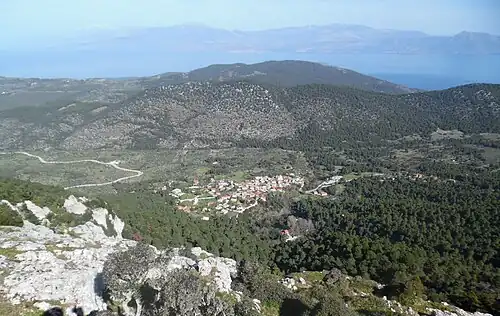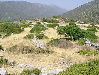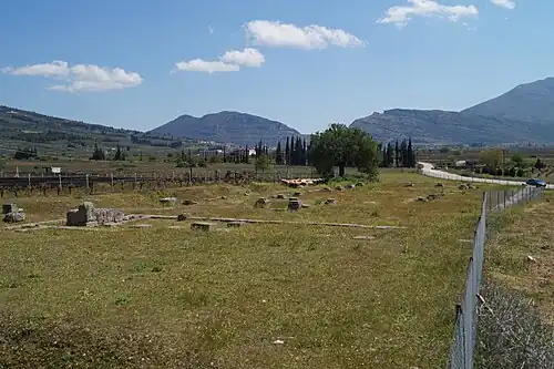 - Лерна[185][186] - это одновременно название местности реки озера (болота)[209] и города. Находится Лерна на юго-запад по побережью от города Темений, вплотную к деревни Мили. В озере (болоте) жила легендарная лернейская гидра, которую убил Геракл. Озеро было отделено от моря песчаной косой, но со временем озеро стало заболачиваться, а в XIX веке полностью высохло. Само озеро (впоследствии болото) питалось от многочисленных источников один, из которых назывался Амимон[210]. Сами реки никогда не пересыхали, даже летом[211]. Павсаний сообщает нам, что гора Понтин преграждала дорогу водам к морю и земля впитывала эту воду[212]. Первые значительные строения появились примерно в 2500 гг. до н. э., к примеру, Дом с черепицей.