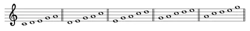 - темперированная пентатоника (октавный звукоряд делится на 5 относительно равных частей, как, например, индонезийский слендро, выразить который европейской нотацией невозможно);