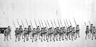 В июле 1864 года, в связи с инцидентом возле Императорских ворот, сёгунат Токугава получил повод для наказания Тёсю-хана. Последний играл роль антиправительственного центра ещё с конца 1850-х годов. Сёгунат намеревался нанести удар по этому центру и, одновременно, утихомирить антиправительственные настроения в стране. Под флаги правительства собралось 150 тысяч самураев из 36 ханов, которые в августе выступили на запад к Тёсю под командованием Токугавы Ёсикацу, правителя Овари-хана. Обязанности заместителя командира исполнял Мацудайра Мотиаки, правитель Этидзэн-хана, а обязанности главного советника — Сайго Такамори, представитель Сацума-хана. Сёгунат не планировал масштабных военных операций, надеясь на быструю капитуляцию немногочисленного противника.