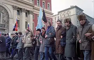 6 ноября 1991 года указом Президента РСФСР Б. Ельцина деятельность КПСС и её республиканской организации — Коммунистической партии РСФСР на территории РСФСР была прекращена[51][52](Спустя год Конституционный суд РФ признал конституционным запрет руководящих структур КПСС и КП РСФСР, но не первичных территориальных организаций партии, «постольку, поскольку эти организации сохраняли свой общественный характер и не подменяли государственные структуры», а также при их организационном оформлении с соблюдением требований законодательства РФ[53]).