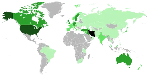 Значительные автохтонные группы персов также проживают в останах Хузестан (персы-хузестани), Северный Хорасан, Керманшах. Более 200 тыс. персоязычных проживает на территории Ирака[54]. Персоязычные переселенцы в Бахрейне образуют сообщество, известное как аджамы Бахрейна.