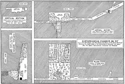 Расположенная ниже уровня земли в скальном известняковом основании, подземная камера осталась незавершённой. Размеры камеры 14×8,1 м, она вытянута с востока на запад. Высота достигает 3,5 м, потолок имеет крупную трещину. У южной стены камеры имеется колодец глубиной около 3 м, от которого в южном направлении на 16 м тянется узкий лаз (0,7×0,7 м в сечении), заканчивающийся тупиком. Инженеры Джон Перринг (John Shae Perring) и Говард Вайз (Richard William Howard Vyse) в начале XIX века расчистили в камере пол и вырыли колодец глубиной 11,6 м, в котором они надеялись обнаружить скрытую погребальную комнату. Они основывались на свидетельствах Геродота, утверждавшего, что тело Хеопса находится на острове, окружённом каналом в скрытой подземной камере. Их раскопки ни к чему не привели. Поздние исследования показали, что камера была брошена незавершённой, а погребальные камеры было решено устроить в центре самой пирамиды.