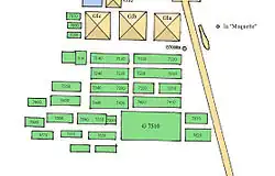 К западу от пирамиды также в 1881 году удалось обнаружить развалины жилища древних строителей пирамиды. В нём располагалось 91 помещение, размеры каждого — 26 на 3 метра[5].