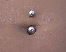 - аллергические реакции на металл украшений, особенно никель, содержащийся в хирургической стали. Риск можно минимизировать, если использовать украшения высокого качества из сплава титана марки G23 (ASTM-F136, ВТ-6), чистого титана (ASTM-F136, ВТ1-0), PTFE, биоапласта (с осторожностью!) или ниобия[42][43];