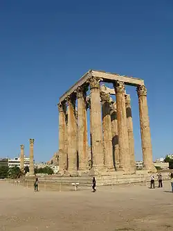 В последние годы жизни Писистрат задумал грандиозный религиозно-архитектурный проект храм Зевса Олимпийского, который планировалось построить на окраине Афин. Этот храм по своим размерам должен был стать крупнейшим храмом в Греции. Его строительство началось при Гиппии, в эпоху демократии стройка была заброшена, в эллинистическую эпоху работы ненадолго возобновились, и лишь во II веке храм был достроен[73].