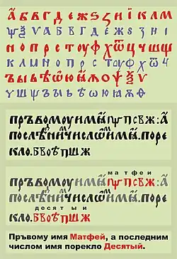 - красные буквы — это буквы обычного алфавита, черные — риторские,
