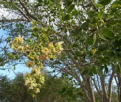 Дерево высотой 5—8 м с овально-продолговатыми листьями 2—4 см длиной.