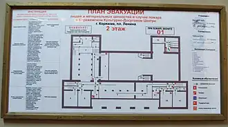 План эвакуации при пожаре (англ. escape plan) — документ, либо визуальное средство обеспечения безопасности, в котором указаны эвакуационные пути и выходы, установлены правила поведения людей, а также порядок и последовательность действий обслуживающего персонала на объекте при возникновении пожара.[1][2]:5.1.1 План эвакуации является составной частью системы знаков безопасности здания. В основе системы лежит стремление использовать как можно меньше слов для передачи информации. Это связано с необходимостью информировать людей в условиях широкого развития международной торговли, туризма и мобильности рабочей силы.[3] В плане эвакуации равнозначны как чертеж, так и текстовая часть. Такие документы в лингвистике носят название поликодовый текст.[4]
