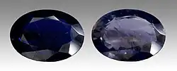 - Кордиерит (обладает эффектом яркого плеохроизма, цвет меняет в диапазоне от жёлтого или бледно-голубого до тёмно-фиолетового, само название этого минерала происходит от слов «корунд» и дихроизм)