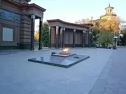 Вдоль улицы Карла Маркса, пересекающей площадь, расположен памятник участникам Октябрьской революции и Гражданской войны. Мемориал имеет вид 40-метровой изогнутой колоннады высотой 4 метра. Решение о создании памятника было принято исполнительным комитетом Луганска в 1930 году. Торжественное открытие памятника состоялось 7 ноября 1937 года.