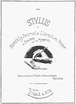 В январе 1843 года По нашёл партнёра, согласившегося помочь с изданием его журнала. Им стал глава еженедельника Saturday Museum Томас Кларк. Название будущего издания изменили на The Stylus[113]. Кларк брал на себя финансовую сторону проекта, По занялся подготовкой проспекта и поиском подписчиков. Специально для первого номера журнала По написал рассказ «Золотой жук», от которого он ждал огромного эффекта на читателей. В течение месяца новость о выходе The Stylus напечатали десятки изданий по всей стране, казалось, мечта По о собственном «идеальном» журнале вот-вот станет явью, но он снова стал заложником преследовавшего его болезненного пристрастия и начал пить. Репутация По как ненадёжного человека, страдающего пьянством, дошла и до Кларка. Однако их договорённость ещё оставалась в силе до мая 1843 года, когда Кларк на страницах своего журнала объявил о своём отказе участвовать в предприятии Эдгара По по «экономическим причинам»[113].