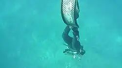 - Не перегружаться, уменьшать груз при нырянии на глубину: у дна плавучесть должна быть нейтральной, на поверхности — положительной (расположение грузов должно обеспечивать положение тела лицом вверх при отсутствии движений пловца[44]).