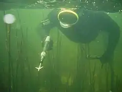 - Акции по подводной очистке водоёмов, как от различного мусора, так и от брошенных браконьерских орудий лова, запутавшихся на дне и годами губящих обитателей водоёмов[55]. Стоит отметить, что извлечение из воды различных деревянных предметов (ветки и стволы деревьев и др.) может нанести ущерб, так как они служат: местом для нереста рыб; поверхностью для откладывания икры многих подводных обитателей (они ведь не станут откладывать икру на ил); укрытием для только что появившихся, и уже подросших мальков; местом для обрастания водорослями и моллюсками, служащими кормом для рыб и их потомства.