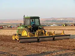 Часто используется для разбивания комков почвы после вспашки. Каток прицепляется к трактору или животным, например, лошадям или волам.