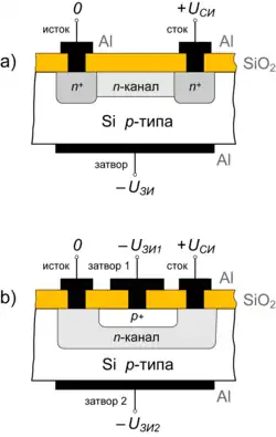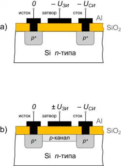 a) — с индуцированным каналом, b) — со встроенным каналом