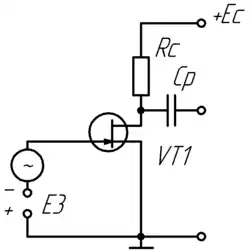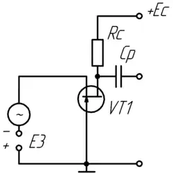 Схема включения полевого транзистора с управляющим p-n-переходом и каналом n-типа с общим истоком