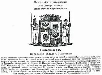 - Екатеринославская губерния — «золотое вензелевое изображение Имени Императрицы Екатерины II» и дата.