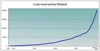 - 23 сентября 2005 года — польская Википедия обгоняет итальянскую Википедию, став пятой крупнейшей Википедией.