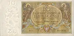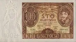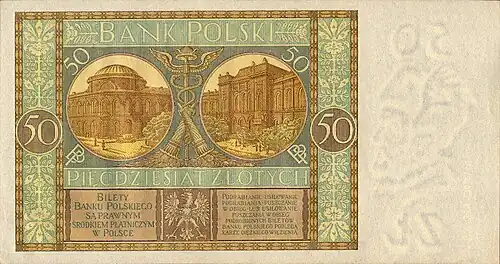 В 1828 году в Царстве начал работу Польский банк, которому было разрешено выпускать банковские билеты (ассигнации) достоинством 5, 10, 50, 100, 500 и 1000 злотых при условии их гарантированного размена на звонкую монету по первому требованию, для чего на балансе банка всегда должны были быть серебряные монеты, эквивалентные по стоимости 1/7 выпущенных ассигнаций[18].