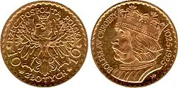 Золотая монета из Кракова, отчеканенная в XIV веке[13] Золотая монета XVII века