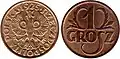 Первоначально злотый делился на 30 грошей и равнялся половине копы, с 1924 года он состоит из 100 грошей.