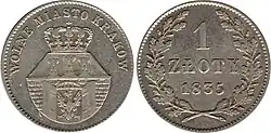В 1815—1846 годах город Краков являлся вольным городом, находящимся в сфере интересов Австрийской империи. В 1846 году он был включён в состав империи. В 1835 году в Вене были выпущены серебряные монеты в 5 и 10 грошей и 1 злотый.