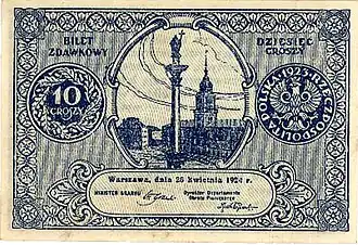 Первые годы независимости не были отмечены экономическими кризисами. Польский финансовый рынок не был отрегулирован, что являлось основной проблемой в те годы. На территории Польши к окончанию Первой мировой войны, в обороте находилось несколько различных денежных единиц. Кроме австро-венгерской кроны, немецкой марки и русского рубля, циркулировавших в соответствующих частях Польши, в обращении также находились эмитированные оккупационными властями во время Первой мировой войны острубль и остмарка. В 1917 году правительство Польши решило заменить их на единую денежную единицу — польскую марку[25].