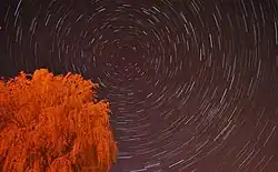 Типичный звёздный след Северного полушария с Полярной звездой в центре