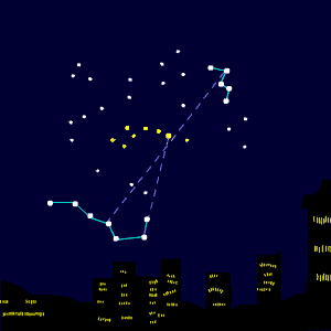 Полярная звезда — самая яркая звезда в созвездии Малой Медведицы (вверху справа)