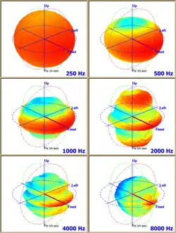 Трёхмерное моделирование звука динамиков может использоваться для прогнозирования их эффективности. Необходимо сделать несколько диаграмм в полярных координатах для широкого диапазона частот, поскольку фронт существенно меняется в зависимости от частоты звука. Полярные диаграммы помогают увидеть, что многие громкоговорители с понижением частоты звука теряют направленность. В случае излучателя, имеющего строгую осевую симметрию или слабо от неё отклоняющегося, достаточно использовать не сферические, а обычные (двумерные) полярные координаты, так как во всех плоскостях, проходящих через ось симметрии, зависимость будет одинаковой или почти одинаковой. Если такой симметрии нет, то какое-то представление о звуковом потоке в разных направлениях может дать пара (для каждой частоты) полярных диаграмм в перпендикулярных плоскостях, для эллиптического или прямоугольного излучателя — связанного с его главными осями.