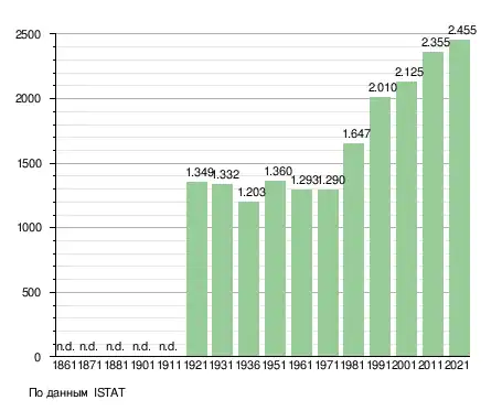 Население коммуны, на 01.01.2024 года, составляет 2449 человек, плотность населения ─ 256,09 чел./км²[1]. Занимает площадь 9,56 км²[1].