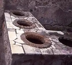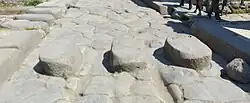 Поскольку системы канализации в Помпеях не было, то все нечистоты выливались прямиком на улицы, поэтому тротуары делались на более высоком уровне, чем проезжая часть улицы, а поперёк улицы устанавливалось подобие пешеходного перехода — высокие камни с плоской верхней поверхностью, чтобы пешеход мог перейти на другую сторону улицы, не испачкавшись в грязи; одновременно такие камни могли послужить преграждением продвижению по улицам враждебных чужеземцев, чьи повозки имели бы скорее всего иную ширину колеи.
